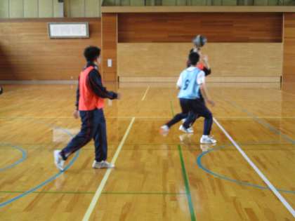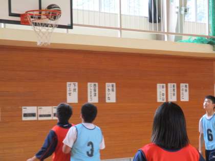 5月20日(金) 2・3年生の合同保健体育の授業の様子です。 バスケットボールの試合をしていました。