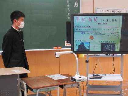3年4限 楡の木タイム(総合的な学習の時間) 公開日 2022/05/20 更新日 2022/05/20 日々の活動から 5月20日(金) 3年生の楡の木タイム(総合的な学習の時間)の授業の様子です。 修学旅行の事後学習の発表会をしていました。