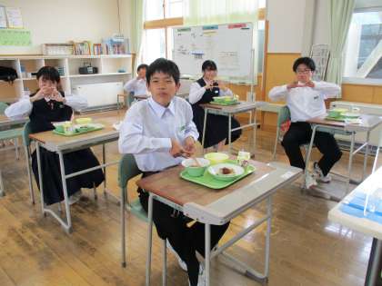 5月20日(金) 1年生の給食風景です。 放送当番の生徒もいました。