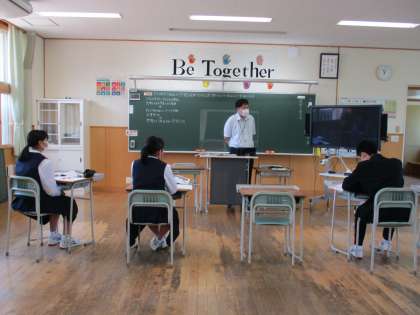 3年3限 社会 公開日 2022/05/23 更新日 2022/05/23 日々の活動から 5月23日(月) 3年生の社会の授業の様子です。 「アメリカから始まった恐慌は日本にどのような影響を与えたか?」という内容の授業でした。