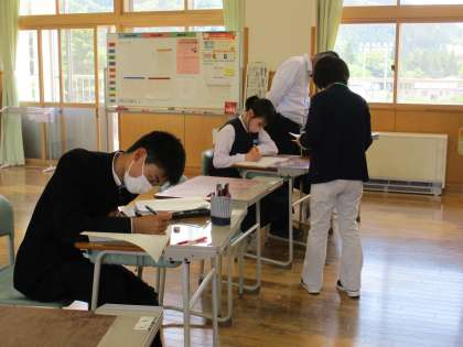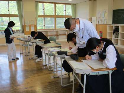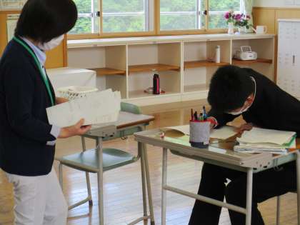 5月23日(月) 3年生の数学の授業の様子です。 これまでの復習をしました。 適宜個別指導をしていました。