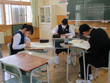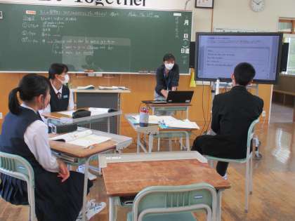3年5限 英語 公開日 2022/05/23 更新日 2022/05/23 日々の活動から 5月23日(月) 3年生の英語の授業の様子です。 「外国人留学生にぴったりのおもてなしプランを考えました。」という内容の授業でした。