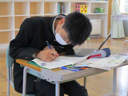 5月24日(火) 3年生の学級活動の様子です。 中間考査に向けて自習をしていました。