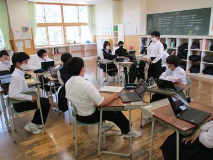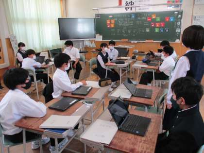 1年6限 楡の木タイム(総合的な学習の時間) 公開日 2022/05/26 更新日 2022/05/26 日々の活動から 5月25日(水) 1年生の楡の木タイムの様子です。 SDGsの動画を見て、今後のすすめ方の方向性を考えました。 班ごとに目的地の候補を話し合いました。 「私たちは○○がいいと思います。理由は○○だからです。」等と他の人が納得するような伝え方をしていました。
