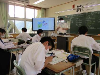 1年1限 社会 公開日 2022/05/26 更新日 2022/05/26 日々の活動から 5月26日(木) 1年生の社会の授業の様子です。 「ヤマト王権はどのように勢力を広げたか?」という内容の授業でした。