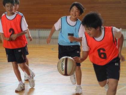 5月26日(木) 1年生の保健体育の授業の様子です。 バスケットボールの試合をしていました。