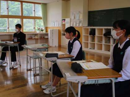 3年2限 英語 公開日 2022/05/26 更新日 2022/05/26 日々の活動から 5月26日(木) 3年生の英語の授業の様子です。 「ディスカッションの内容をもとに、自分の意見を考える。」という内容の授業でした。