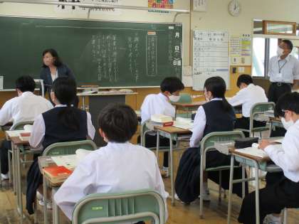1年4限 国語 公開日 2022/05/26 更新日 2022/05/26 日々の活動から 5月26日(木) 1年生の国語の授業の様子です。 「段落の役割、工夫点について考えよう」という内容の授業でした。