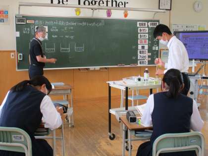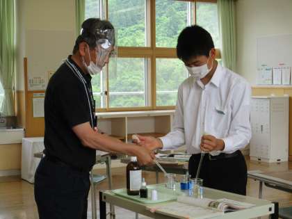 3年4限 理科 公開日 2022/05/26 更新日 2022/05/26 日々の活動から 5月26日(木) 3年生の理科の授業の様子です。 「酸とアルカリを混ぜたときの色の変化」という内容の授業でした。 実験をする人と記録を書く人に分かれていました。