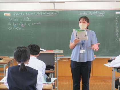 1年5限 英語 公開日 2022/05/26 更新日 2022/05/26 日々の活動から 5月26日(木) 1年生の英語の授業の様子です。 身近な人や物を紹介するときに英語でどう表現するか学んでいました。