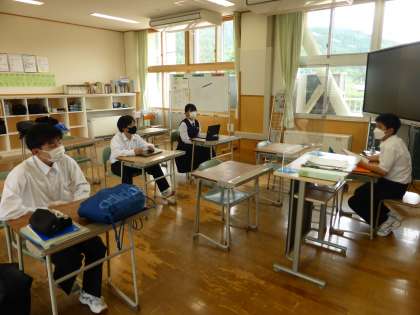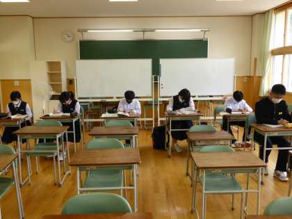 実践部の活動とSLの会 公開日 2022/05/26 更新日 2022/05/26 日々の活動から 5月26日(木) 1番上は、厚生実践部の様子です。熱中症対策について話し合っていました。 2番目は、広報実践部と執行部の様子です。 広報実践部は、ポスターの刷新をしていました。 執行部は、視聴覚室で話し合っていました。 3番目は、SL(Self Learning)の会の様子です。 来週の中間考査に向けて、自主学習をしていました。