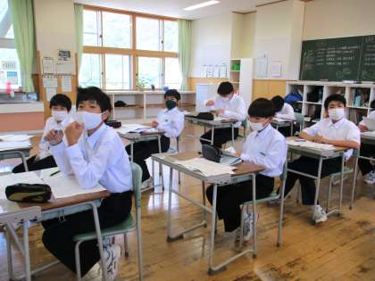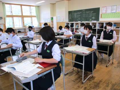 5月30日(月) 1年生の国語の授業の様子です。 さっそく2限のテストの見直しをしていました。