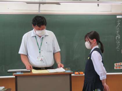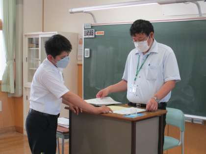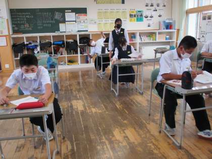 2年6限 学級活動 公開日 2022/05/30 更新日 2022/05/30 日々の活動から 5月30日(月) 2年生の学級活動の様子です。 「社会に学ぶ『14歳の挑戦』」で活動する事業所に向けて自己紹介カードの清書をしていました。