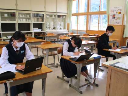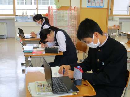 3年3限 美術 公開日 2022/05/31 更新日 2022/05/31 日々の活動から 5月31日(火) 3年生の美術の授業の様子です。 「日本の世界文化遺産の魅力をさぐろう」という内容の授業でした。
