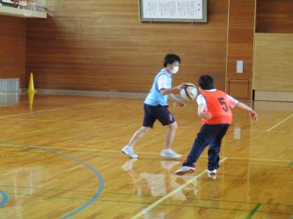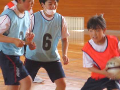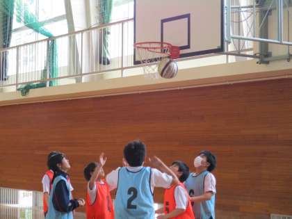 5月31日(火) 1年生の保健体育の授業の様子です。 バスケットボールの試合をしていました。