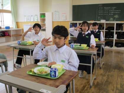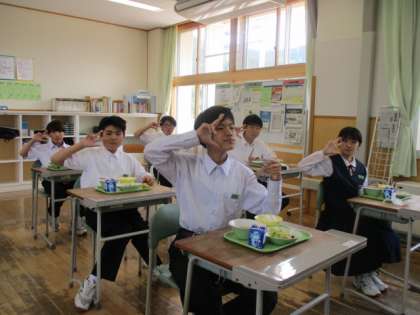 6月1日(水) 1年生の給食風景です。 放送当番の生徒もいました。