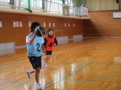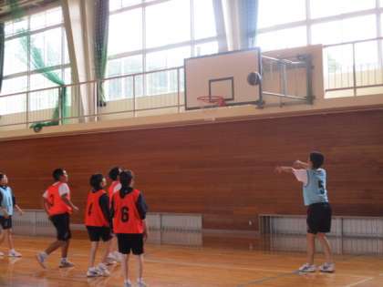 6月1日(水) 2・3年生の保健体育の授業の様子です。 バスケットボールの試合をしていました。