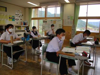 6月1日(水) 2年生の社会の授業の様子です。 「少子高齢化」について学んでいました。