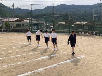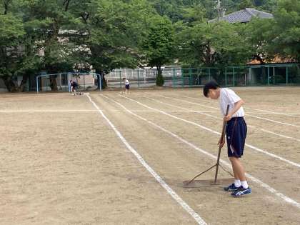 陸上競技部 公開日 2022/06/01 更新日 2022/06/01 日々の活動から 6月1日(水) 本日の陸上競技部の活動の様子です。 アップ後に、100mと200mのタイムを種目別に計りました。 最後の方には、コースの整備もしました。 大会が近いので、けがや熱中症にならないようにしながら効果的な練習をしていきましょう。