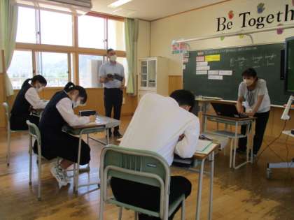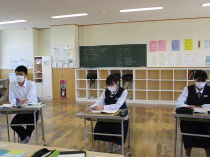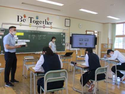 3年2限 英語 公開日 2022/06/02 更新日 2022/06/02 日々の活動から 6月2日(木) 3年生の英語の授業の様子です。 自分がずっと続けていることに関して現在完了形を用いて表現しました。