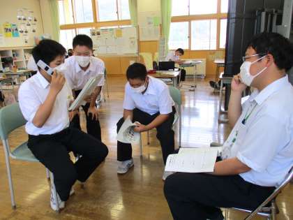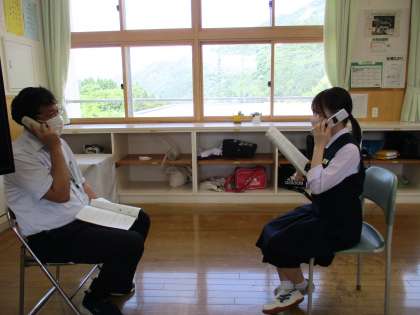 2年4限 楡の木タイム 公開日 2022/06/02 更新日 2022/06/02 日々の活動から 6月2日(木) 2年生の楡の木タイムの様子です。 「社会に学ぶ『14歳の挑戦』」の事前訪問を予約する電話の練習をしていました。