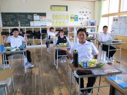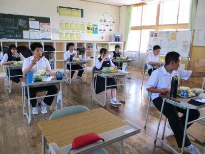 6月2日(木) 2年生の給食風景です。 放送当番の生徒もいました。