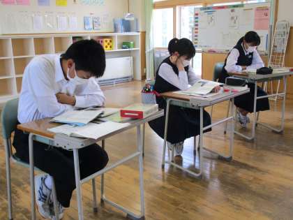 3年5限 国語 公開日 2022/06/02 更新日 2022/06/02 日々の活動から 6月2日(木) 3年生の国語の授業の様子です。 「作られた『物語』を超えて」を読んで、筆者のいう「物語」について考えました。