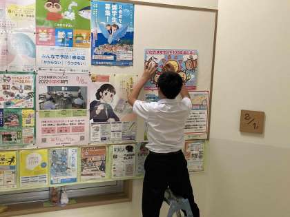 広報実践部の活動 公開日 2022/06/02 更新日 2022/06/02 日々の活動から 6月2日(木) 本日の広報実践部の活動の様子です。 全員で、どのポスターをどこに貼るか考えてから ポスターの刷新をしました。