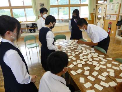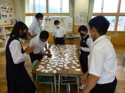2年4限 楡の木タイム 公開日 2022/06/03 更新日 2022/06/03 日々の活動から 6月3日(金) 2年生の楡の木タイムの様子です。 狩歌というカードゲームを行っていました。 その後席替えをしていました。