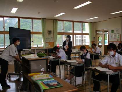 6月6日(月) 2年生の英語の授業の様子です。 「name A B」等の文法を学んでいました。