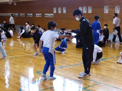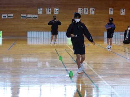 続いて中学校の生徒会主催で「ピンポン球落とすなゲーム」をしました。