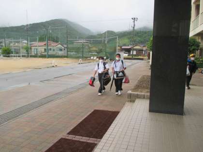 登校風景 公開日 2022/06/07 更新日 2022/06/07 日々の活動から 6月7日(火) 今日は、雨です。 午後からの小中清掃ボランティア活動のため、長靴を用意しています。 晴れますように…。