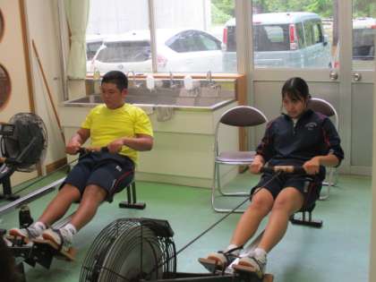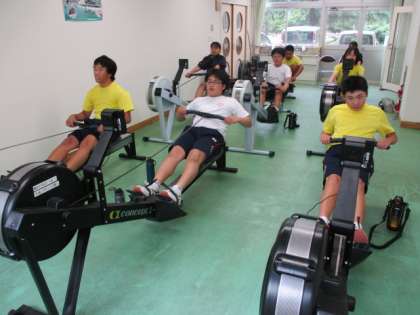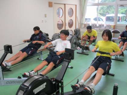 ボート部 公開日 2022/06/07 更新日 2022/06/07 日々の活動から 6月7日(火) 今日のボート部は校内での陸上トレーニングでした。 エルゴメーターでの練習や筋力トレーニングを行い、漕艇場での練習に備えて準備をしていました。