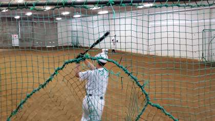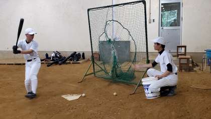 ピロティでバッティングの確認を行いました。