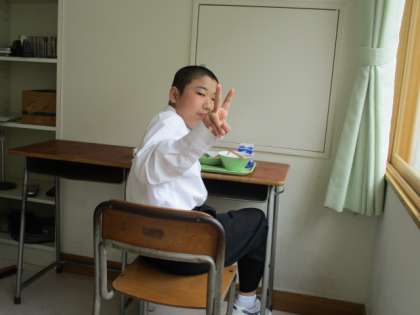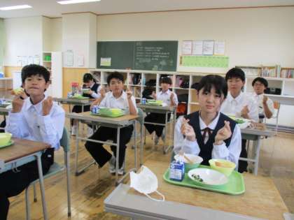 6月8日(水) 1年生の給食風景です。 放送当番の生徒もいました。