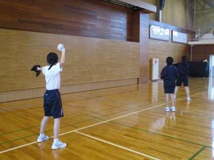 ソフトボール部 公開日 2022/06/08 更新日 2022/06/08 日々の活動から 6月8日(水) 本日のソフトボール部の活動の様子です。昨日に引き続き今日も雨が降っていたので、体育館で活動しました。基礎練習の後に、コーチににノックをしていただき、納得のいくプレーができなかったときは「もう1球お願いします!」と大きな声で言っていました。大会に向けて、気持ちが高まってきている様子でした。