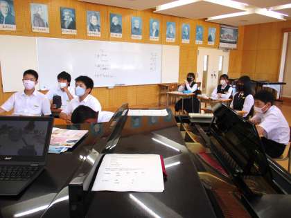 6月9日(木) 2年生の音楽の授業の様子です。 「合唱曲を選ぼう」という内容の授業でした。