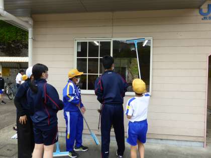 小中合同ボランティア清掃 2 駅チーム 1 公開日 2022/06/09 更新日 2022/06/09 日々の活動から まず、JRの職員の方に挨拶をしました。 小学生と中学生が協力して窓を拭いたり、トイレを掃除したりしました。