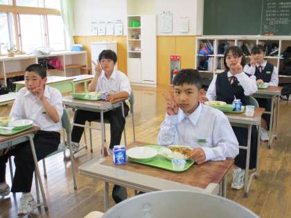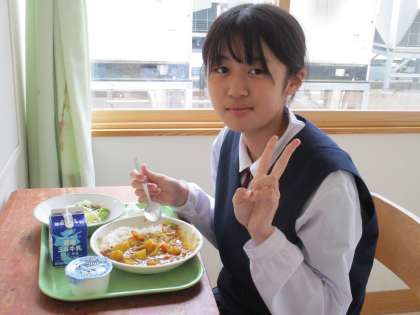 6月14日(火) 1年生の給食風景です。 放送当番の生徒もいました。