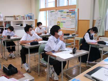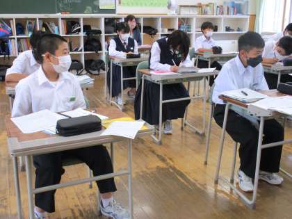 6月14日(火) 1年生の国語の授業の様子です。 自分が好きなものをクラス全員にスピーチしていました。