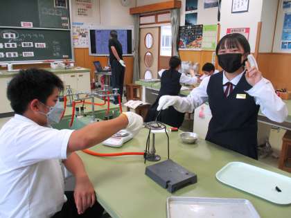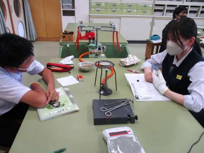 2年5限 理科 公開日 2022/06/14 更新日 2022/06/14 日々の活動から 6月14日(火) 2年生の理科の授業の様子です。 「金属を熱したときの質量の変化について調べよう」という内容の授業でした。