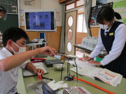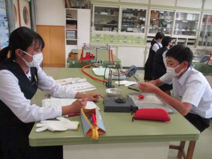 2年5限 理科 公開日 2022/06/15 更新日 2022/06/15 日々の活動から 6月15日(水) 2年生の理科の授業の様子です。 「金属を熱したときの質量の変化について調べよう」という内容の授業でした。