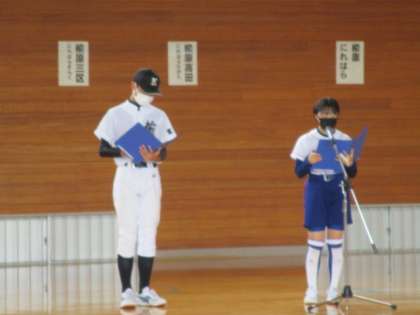 全校6限 富山市中学校総合選手権大会・ボート部全国大会壮行会 公開日 2022/06/16 更新日 2022/06/16 日々の活動から 6月15日(水) 本日 体育館でタイトルの壮行会を生徒会主催で行いました。 1 はじめの挨拶 2 各部活動の意気込み 「野球部」「陸上競技部」「ソフトボール部」「ボート部」の順に行いました。 3 激励の言葉 4 大会参加心得 5 エール・楡原中学校応援歌