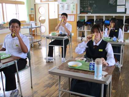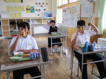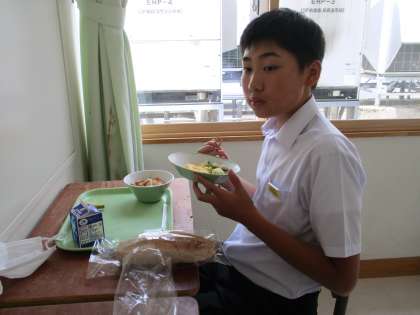 6月20日(月) 2年生の給食風景です。 放送当番の生徒もいました。