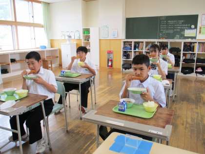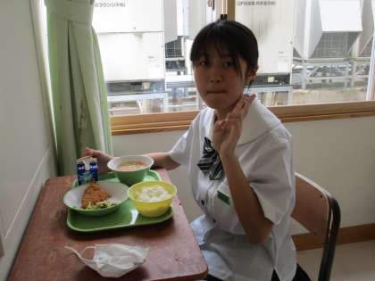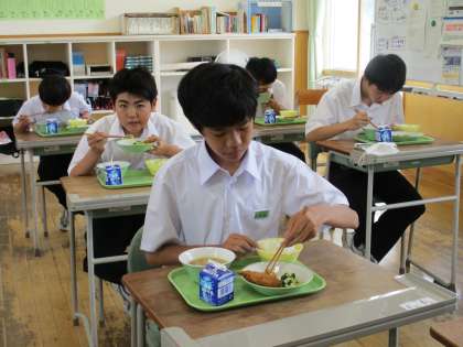 6月21日(火) 1年生の給食風景です。 放送当番の生徒もいました。