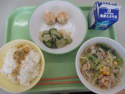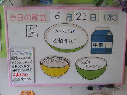 6月22日(水) 本日の給食です。温かいラーメン、おいしそうですね。