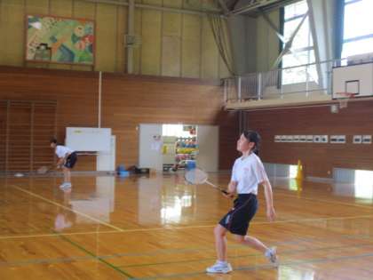 6月23日(木) 3年生の保健体育の授業の様子です。 バドミントンの基礎打ちをしていました。
