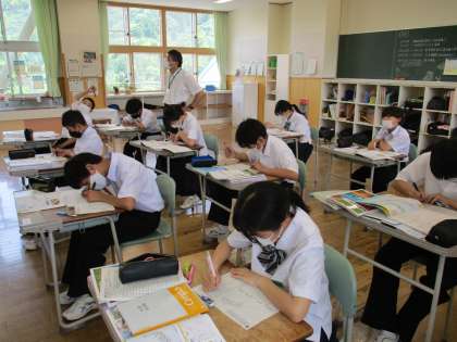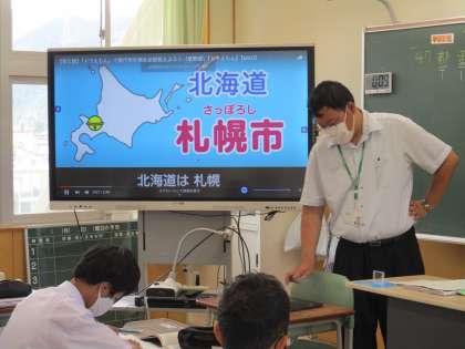 6月23日(木) 1年生の社会の授業の様子です。 47都道府県の県庁所在地を確認していました。