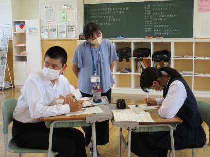 3年2限 英語 公開日 2022/06/23 更新日 2022/06/23 日々の活動から 6月23日(木) 3年生の英語の授業の様子です。 「初対面の相手に歓迎の気持ちを伝えるには?」という内容の授業でした。