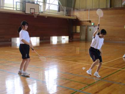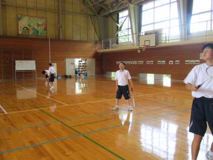 6月23日(木) 1年生の保健体育の授業の様子です。 バドミントンの基礎打ちをしていました。